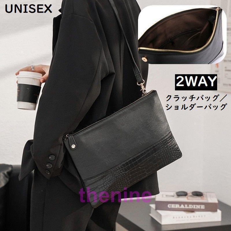 2WAY クラッチバッグ ショルダーバッグ メンズ レディース セカンドバッグ 斜めがけ 肩掛け レザー調 防水 大容量 A4
