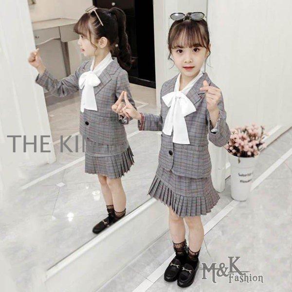 子供スーツ フォーマル 女の子 子供服 セットアップ キッズ おしゃれ 長袖 春秋 2点セット アウター 立ち襟 スカート チェック柄 入学式 卒業式 可愛い 通学着