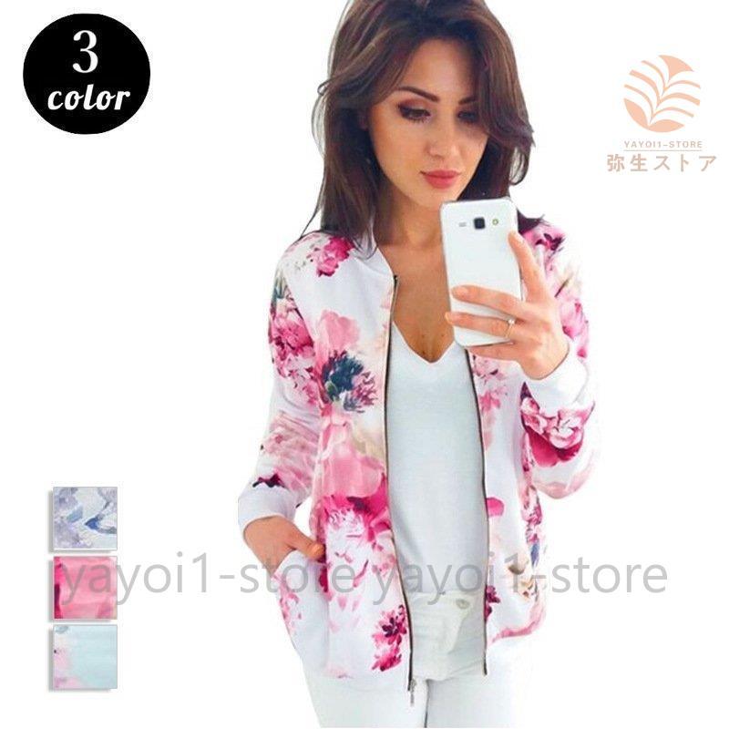 ジャンパー ブルゾン ジャケット レディース アウター 春 秋 花柄 長袖 ジッパー カジュアル 可愛い おしゃれ