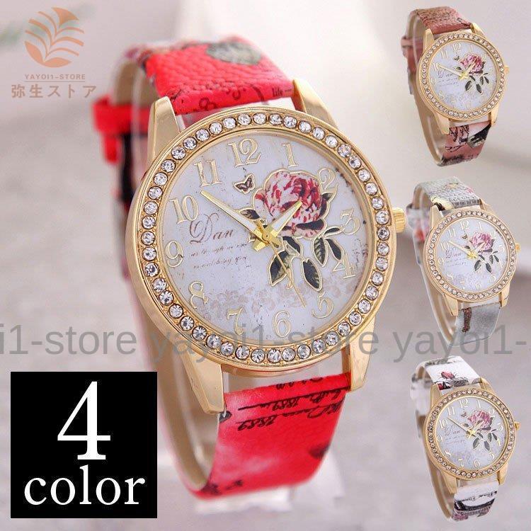 腕時計 レディース ファッション小物 アクセサリー雑貨 アナログ ベルト 円 ラウンド 花 エレガント ラインストーン レトロ かわいい 上品 フラワ