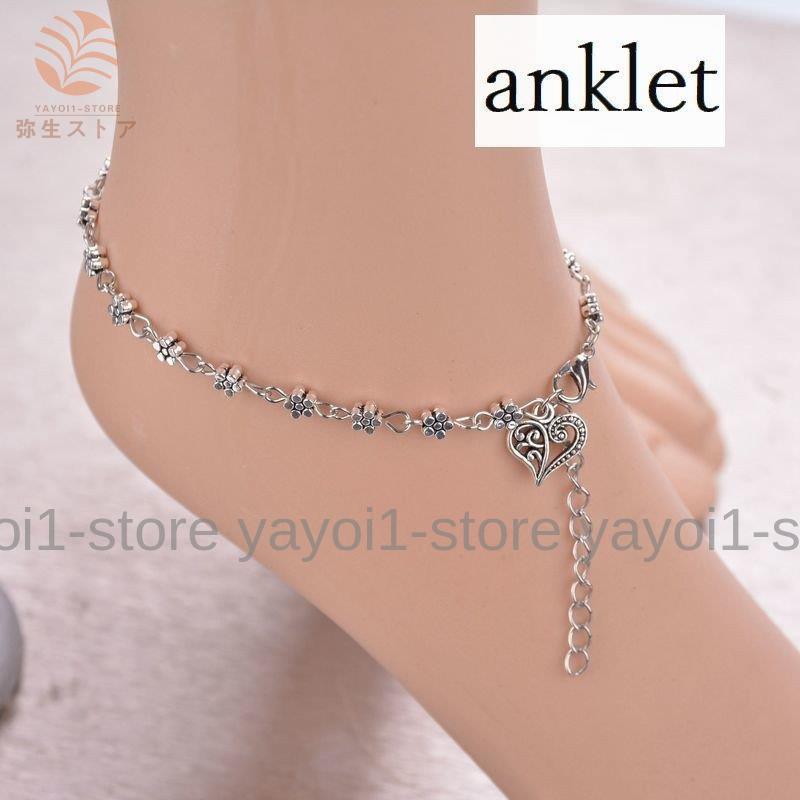 アンクレット アクセサリー レディース 足首 フラワー シルバーカラー 花 ハート ファッション雑貨 ブレスレット かわいい おしゃれ プレゼント プ