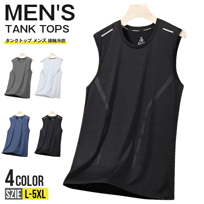 タンクトップ メンズ 接触冷感 スポーツウェア ノースリーブ 速乾 ストレッチ性 ジム ランニング バスケット トレーニング 運動着 おしゃれ ファッション 春 夏