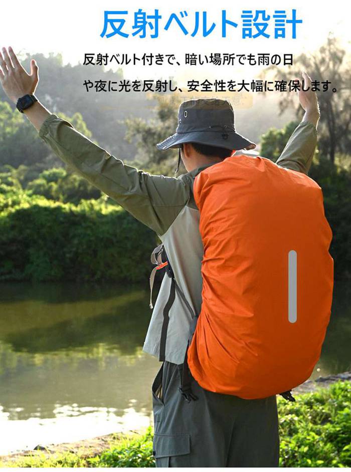 レインカバー リュックカバー 防水カバー 反射テープ 雨よけ 風飛び防止 夜間安全 ランドセル 雨用