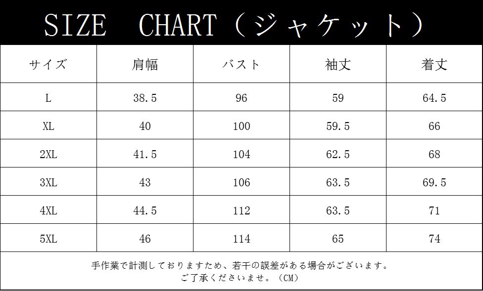 【サイズ】L XL 2XL 3XL 4XL 5XL