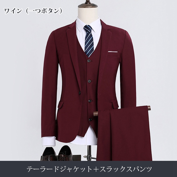 ブラック(二つボタン)、ネイビー(二つボタン)、グレー(二つボタン)、ワイン(二つボタン)