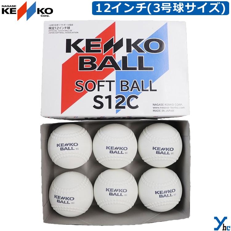 ナガセケンコー 野球 ソフトボール 12インチ 旧3号球ボール 検定球 半ダース 6球セット 試合球 日本製 小学生 ジュニア 年少ソフト用 用具 プレゼント s12c ybc