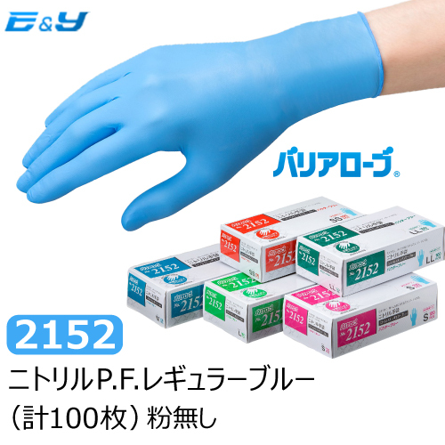 ポイント2倍 ニトリル手袋 ゴム手袋 ブルー SS S M L LL 粉なし PF No.2152 ニトリルP.F.レギュラー ブルー リーブル バリアローブ 100枚