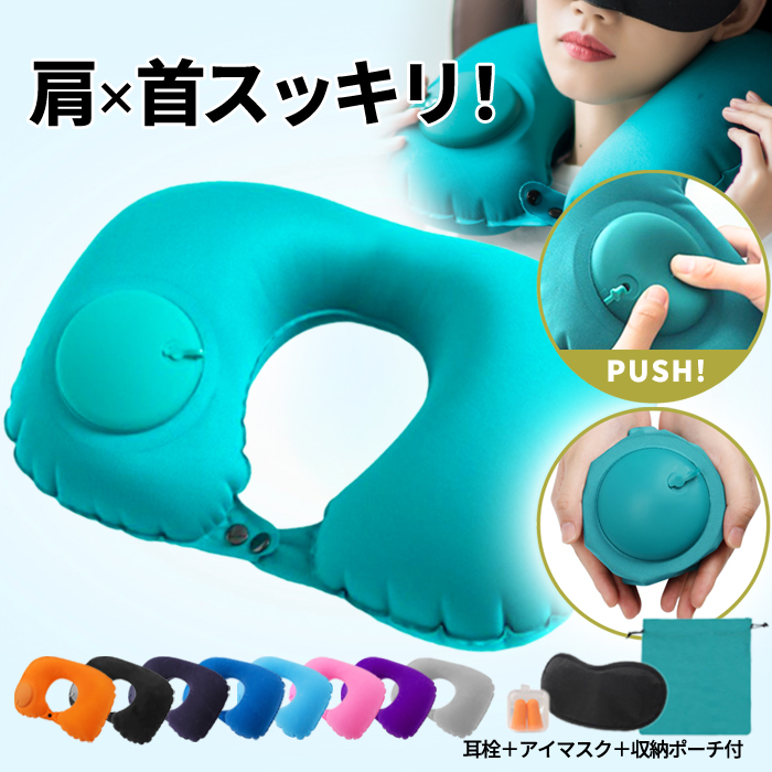 [SALE!1190円→890円!]ネックピロー ポンプ 式 U字 耳栓 アイマスク セット エアー 首枕 旅行 枕 コンパクト 空気 トラベル ピロー ネック [郵3]^bm1430^