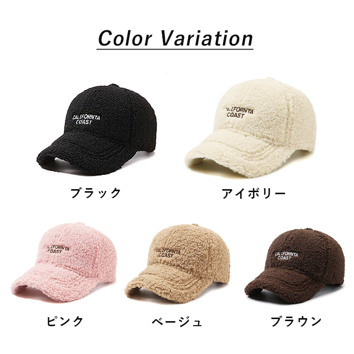 [1点1090円!対象2点購入クーポンで]キャップ ボア ボアキャップ ロゴ 帽子 野球帽 サイズ調整 もこもこ 秋冬 かわいい カジュアル ストリート 軽量[郵3]^bm1567^