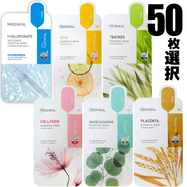 【5種類=50枚】選べる50枚 メディヒール エッセンシャル マスク パック 韓国パック 韓国コスメ フェイスパック