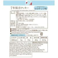 | 商品の説明 | 商品の説明 ・7年保存クッキー (チーズ味・ホワイトチョコココナッツ味・パンプキン味) (1)チーズ味 328kcal (2)ホワイトチョコココナッツ味 335kcal (3)パンプキン味 332kcal 上記は1袋3本(70g)あたりの表記 原材料・成分 チーズ味: 小麦粉(国内製造)、パン粉(小麦粉、糖類、その他)、マーガリン、砂糖、異性化液糖、ショートニング、ナチュラルチーズ、麦芽糖、水飴、鶏卵、食用卵殻粉/膨張剤、香料、着色料(カロチン)、ビタミンA、ビタミンD?、ビタミンE、ビタミンB?、ビタミンB?、ビタミンB??、ナイアシン、パントテン酸カルシウム、葉酸、ビタミンC、(一部に小麦・卵・乳成分・大豆を含む) パンプキン味: 小麦粉(国内製造)、マーガリン、砂糖、パン粉(小麦粉、糖類、その他)、異性化液糖、パンプキンパウダー、水飴、鶏卵、全粉乳、ショートニング、食用卵殻粉/香料、膨張剤、着色料(カロチン)、ビタミンA、ビタミンD?、ビタミンE、ビタミンB?、ビタミンB?、ビタミンB??、ナイアシン、パントテン酸カルシウム、葉酸、ビタミンC、(一部に小麦・卵・乳成分・大豆を含む) ココナッツ味: 小麦粉(国内製造)、パン粉(小麦粉、糖類、その他)、マーガリン、砂糖、異性化液糖、ココナッツミルクパウダー、ホワイトチョコレート、水飴、鶏卵、食用卵殻粉/膨張剤、香料、ビタミンA、ビタミンD?、ビタミンE、ビタミンB?、ビタミンB?、ビタミンB??、ナイアシン、パントテン酸カルシウム、葉酸、ビタミンC、(一部に小麦・卵・乳成分・大豆を含む) |