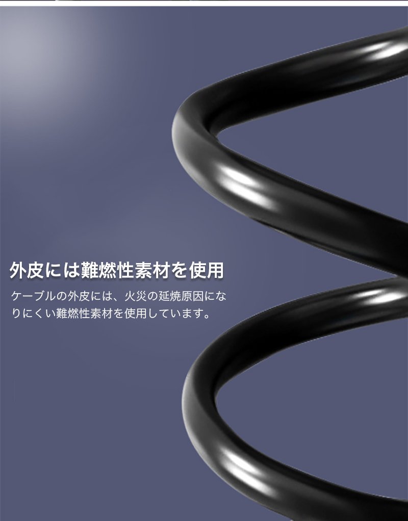 ケーブルの外皮には、火災の延焼原因になりにくい難燃性素材を使用しています。