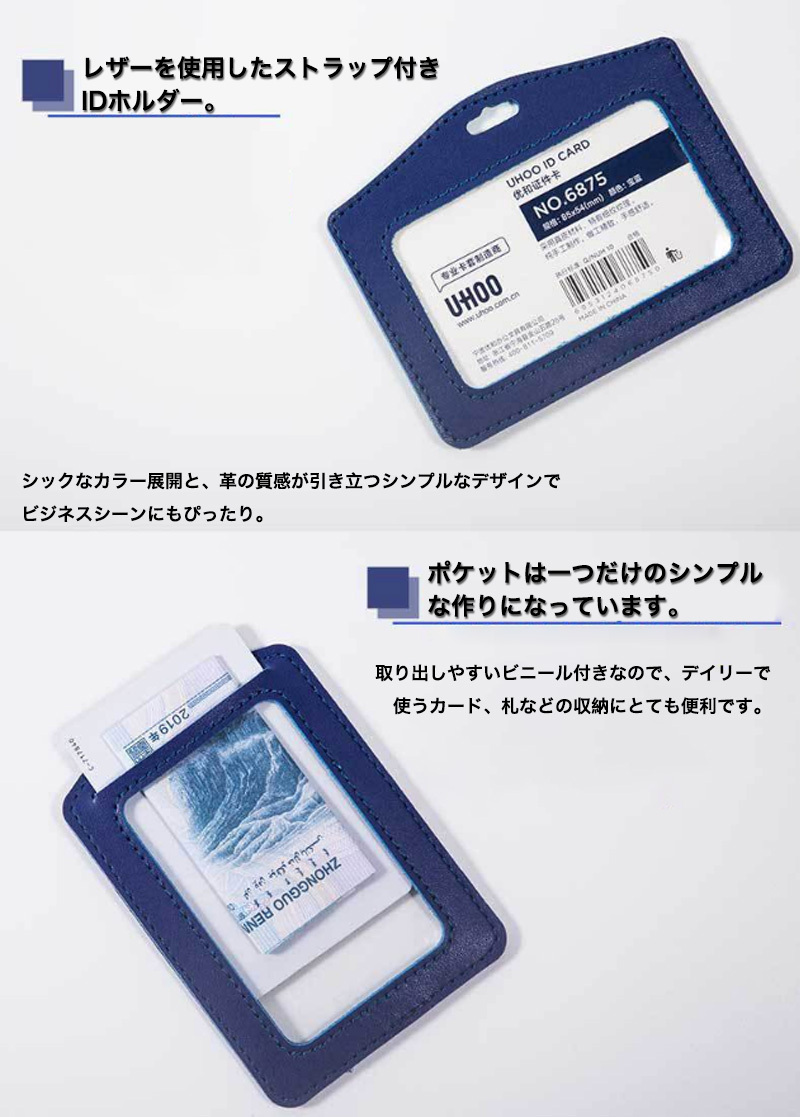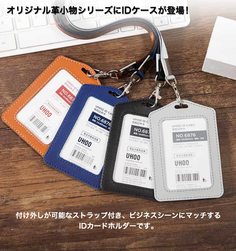 付け外しが可能なストラップ付き、ビジネスシーンにマッチするIDカードホルダーです。