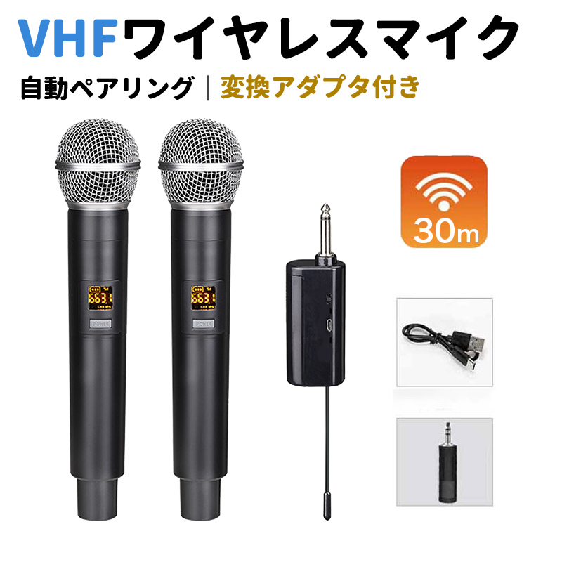 ワイヤレスマイク 2本 セット カラオケ マイク 2本同時 ハンドマイク ワイヤレス VHF 無線 受信機 会議 スピーチ 公演 パーティー 充電式 6.5mm 3.5mm ジャック
