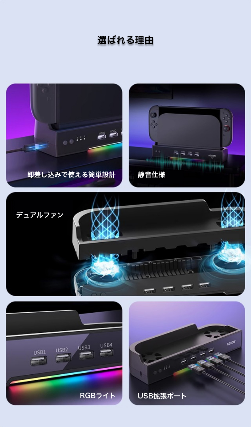 Switch2 ドック 冷却 スタンド switch2 冷却ファン スイッチ2 ドック 冷却パッド USBポート nintendoswitch2 冷却ファン 任天堂 ns2 switch 2 放熱 RGB ライト