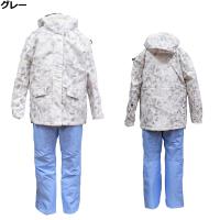 ジャケット脇下、パンツポケット内のサイズ調整用のヒモ付を引っ張って縛ることで、最大15〜20センチのサイズ調整が可能です。