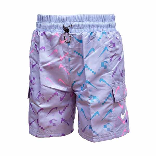ちりばめられたロゴが特徴のキッズボレーショーツ。付属のドローコードによりウエスト調節が可能。股下6インチ(15.2cm)、サイドポケット、裏側はメッシュ素材の総裏地仕様。