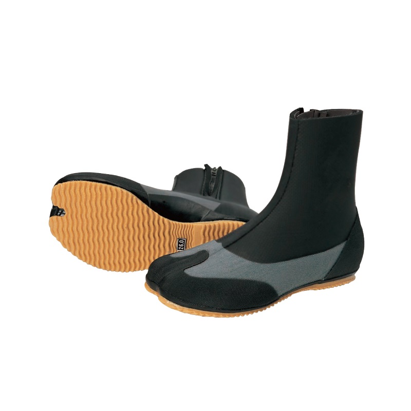 水中の作業に最適な先割れマリンたび。表面には水切れが良くお手入れしやすいメッシュスキン使用。脱ぎ履きしやすいサイドファスナー付。Hanshinkiji CM-317 阪神素地 CM-317 マリンたび(先割)●品 番:CM-317●カラー:ブラック●サイズ:28cm●素 材:メッシュ/CRスポンジ(5mm厚)+ジャージ ソール:合成ゴム