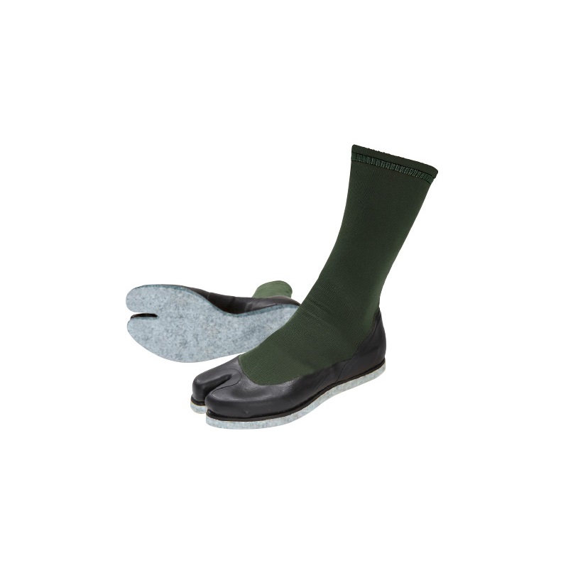 ソックスにフェルトを付けたたび。コンパクトで持ち運びしやすい。川の中でグリップ力抜群のフェルト底軽くて動きやすく、フィット感抜群。Hanshinkiji F-01G阪神素地 F-01G フィッシングたび●品 番:F-01G●カラー:カーキ●サイズ:25cm●素 材:アッパー/ナイロンソックス ソール/PPフェルト※表示サイズは目安です。