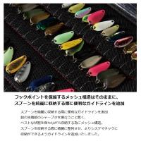 システマチックにスプーンを収納できるTIMONスプーンウォレットがスタイリッシュなデザインとより快適な仕様にUPDATE!!スプーンのシステムマチックな収納はもちろん、フックのコンディションにまで想定した設計のTIMONスプーンウォレットがデザイン、仕様ともにUPDATEして登場。スプーンを綺麗に収納する際に便利なガイドラインを追加し、スプーンとスプーンの干渉を防ぐクリアシートは厚みを増してよりルアーを傷つけずらい構造となりました。鈎の先端部のシャープさを損なうこと無く、ベストな状態を保ちながら収納する為にメッシュ構造を採用。ウォレット内側のメッシュ部分にフックを引っ掛けるシステムにより、仕切りに“刺す“のではなく、”引っ掛ける”ことで収納時におけるフックポイントの消耗を防ぎます。デザインも用途に合わせて使い分けも可能な3色をラインナップ。ウォレットを広げるときにフィンガーストラップに手を通すことでウォレットの不意な落下を防ぎます。スプーンを収納する為だけではなく、使用する状況までを想定したアイデア満載のスプーンウォレットです。※かえし(バーブ)のあるフックを収納する場合、“返し”がメッシュに引っ掛かりメッシュの破損等に繋がる場合がございますのでご注意ください。※フックを引っ掛けるという収納構造上、本体を閉じていても、振動や衝撃が加わることで内部でスプーンが仕切りから外れる場合がございます。お取り扱いにはご注意ください。■ルアー同士の干渉を防ぐPVCシート仕切りの間にはルアー同士の干渉を防ぐ厚手のPVCシートを配置。■フックポイントを保護するメッシュ構造はそのままに、スプーンを綺麗に収納する際に便利なガイドラインを追加鈎の先端部のシャープさを損なうこと無く、ベストな状態を保ちながら収納する為にメッシュ構造。スプーンを収納する際に綺麗に整列させ、よりシステマチックに収納ができるようガイドラインを追加いたしました。■フロントにはTIMONロゴを配置■ファスナータブにはジャッカルロゴを配置■コンパクトなシルエットの中に多くのスプーンを綺麗に収納可能JACKALL TIMON TIMON SPOON WALLET Rジャッカル ティモン TIMON スプーンウォレット R●Size:S(W205mm×H105mm)●Color:ベージュ