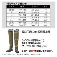 ベルトいらずのヒップウェダーベルトで留めなくてもズレてこない自立型のヒップウェダー。ベルトが付いていないので、着脱が簡単。張りのある生地を採用することでベルトなしでもズレおちずブーツ感覚で着用可能。履き口を斜めカットにすることで、動きやすさが向上。お好みに応じてストラップが取り付け可能なアイレット付。フェルトソールとラジアルソールの2ラインナップ。■ソールゴロタを中心に河川、磯場やテトラ、防波堤などに対応するフェルトソールと砂浜をはじめ、防波堤・オカッパリ・管理釣り場など幅広い用途で使えるラジアルソール。■ベルトレスベルトが無くてもズレ落ちてこない生地自立型。張りのある特殊生地を採用。■アイレット■履き口外ももが高く内ももが低い斜めカットの履き口。PROXプロックス 自立ヒップウェダー●商品コード:PX3442M●カラー:サンドカーキ●サイズ:M●足サイズ(cm):25〜25.5●履口円周(cm)股側最上部:約62●ふくらはぎ円周(cm):約43●ブーツ部履口内径(cm):約37●自重(kg):約1.6●底:フェルト※サイズは目安です。