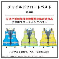 日本小型船舶検査機構承認モデルがチャイルド用ベストで登場!!安心の日本小型船舶検査機構(JCI)承認モデルチャイルド用フローティングベスト小児用 CSマーク(LC1)のライフジャケット。バックルを留めて、ベルトを締めるだけ。着せてあげるのも簡単。ショルダーベスト調整型なので成長の早いお子様にも順応。水辺でのお子様の安心安全をお手伝い。樹脂製笛付き。落水時のフローティングベストの脱げ防止用股ベルト標準装備。※市場にあるライフジャケットは「非承認」モデルが多く散見されます。成長の早い子供向けという理由から、安価な製品が市場に溢れています。しかし、悲惨な事故を未然に防ぐためには、安全性への意識を高め、信頼のおける高品質な製品を選ぶことが、安心につながります。DAIWA DF-3925ダイワ DF-3925 チャイルドフロートベスト●品 番:DF-3925●カラー:イエロー●サイズ:L●身 長:120〜150cm●体 重:25〜40Kg未満浮力●初 期:約5.0Kg●素 材:表地:ポリエステル 裏地:ポリエステル 浮力材:ポリエチレン独立発泡材(浮力:5Kg/24時間以上)●着 丈:L/39cm(目安)