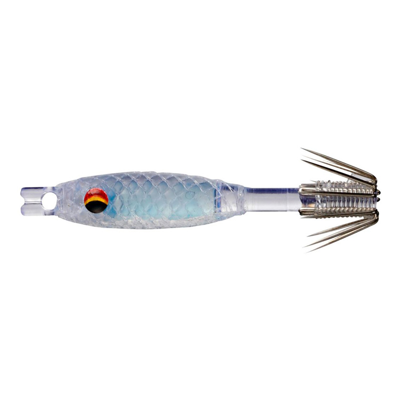 透明感あるソフトボディがイカを魅了!マルイカスッテにソフトマテリアルを新採用!マルイカの繊細なアタリ(触り)を掛ける為にはボディと針に掛かりしろが必要。針掛かりをスムーズにする為の細身ボディにこだわりつつ、イカが触れる外側はソフトに仕上げてイカが見切って離しづらくした設計。内側の色が透明のエラストマー越しに透けて見せる事でぼんやり怪しくイカにアピール!DAIWA MID SUTTE 40S SOFTダイワ ミッドスッテ40S ソフト●カラー:ケイムラクリア ライトブルー
