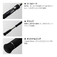 ライトなスタイルで鮎釣りが手軽に楽しめる、アユゲー(鮎のルアー釣り)専用ロッド。縄張り争いをする習性を利用した鮎の友釣り。友釣りで必要な「おとり鮎」の代わりに「ルアー」を使って鮎針(鮎仕掛け)をセットしてルアーをポイントへ送り込み、川の流れを利用してルアーを操り鮎を狙う「アユゲー」に特化した専用ロッド、ブレインストーム鮎。ベイトモデル・スピニングモデル共にカーボンソリッドティップを最適な長さで搭載したファストテーパーブランクとEVAセパレートグリップの組み合わせにより優れた操作性を実現。さらにティップ部をホワイトで塗装、ガイドを蛍光イエローラッピングすることで、ティップが常に水中のルアーの動きや鮎のアタックを視覚的にとらえ、流れの中を狙い通りに探ることができます。魚を掛けてからは、身切れを防ぐフレキシブルなベリーと、流れの中のファイトに負けることなく魚を寄せて引き抜けるバットパワーでランディングへと導きます。ルアーを用いることで、ライトなスタイルで手軽に楽しめる。チャラ瀬、平瀬、急瀬、トロ瀬・・・鮎が潜むあらゆるシチュエーションでオールラウンドに活躍。「アユゲー」専用ロッド、ブレインストーム鮎。※アユゲー=アユゲーム(鮎のルアー釣り)の略<スピニングモデル>初心者に扱いやすいスピニングタイプ■ガイドFujiステンレスフレーム・アルミナオキサイド製Oリングガイドをオリジナルセッティング。■ジョイント美しいベントカーブを実現する、プットインジョイントを採用。■カーボンソリッドティップ操作性に優れたカーボンソリッドティップを最適な長さで搭載。さらに、ティップ部をホワイトで塗装、ガイドを蛍光イエローラッピングすることで、水中のルアーの動きや鮎のアタックを視覚的にとらえることが可能に。■リールシート操作性、ホールド力を追求したFuji VSSリールシートをダウンロック式で採用。■グリップ軽量化と操作性を重視した、EVAセパレートグリップを採用。■オリジナルリング「Golden Mean」オリジナルアルミリングを装着。Golden Mean Brainstorm AYUゴールデンミーン ブレインストーム鮎●品番:BSAS-90●全長(ft/m):9 / 2.70●自重(g):119●仕舞寸法(cm):139.0●継数:2●適合ルアー(g):5〜21●適合ライン(lb.):3〜10●使用材料:カーボン繊維99.9%、グラス繊維0.1%