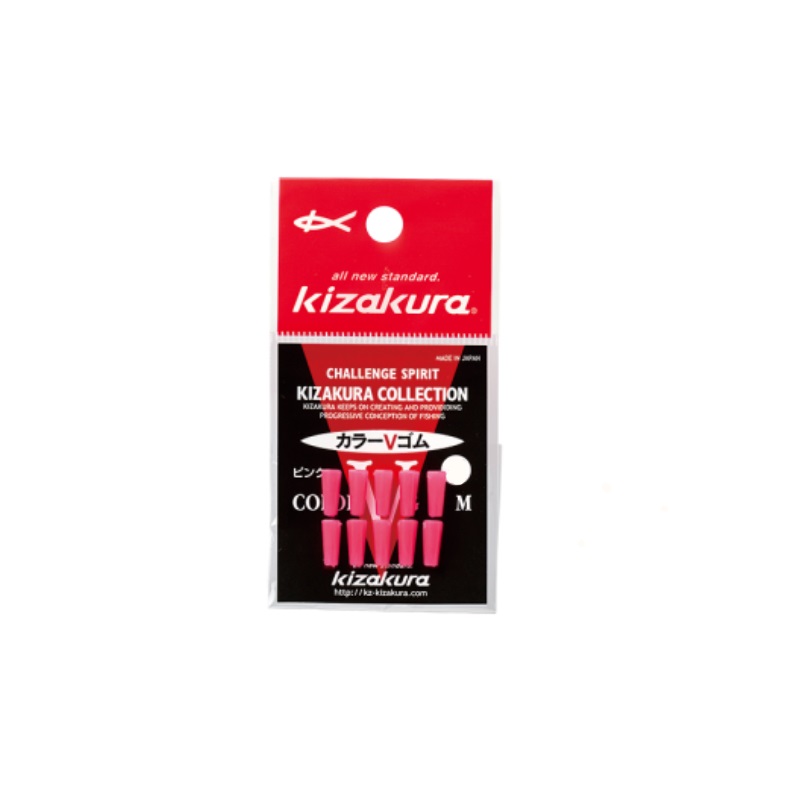 視認性が重視され、ウキとのフィット性もよい。Sサイズはガンタッチに適応。kizakuraキザクラ カラーVゴム●サイズ:S●カラー:ピンク●入数:6コ入