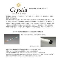 ■粉雪舞う季節。熱い想いとともに。雪の結晶をロゴにもつ「クリスティア」。そのターゲットはワカサギ。誰にも狙え、冬期に最も熱く盛り上がる。釣りは他のスポーツと違い、トッププレイヤー用にカスタマイズした道具を用いない。つまり、作り込まれたモデルは習熟度にかかわらず釣りの楽しさを引き出せることに繋がる。クリスティアはワカサギの楽しさを誰でも享受できることを根底にしながらも、DAIWAテスター陣のこだわりを具現化する。このこだわりは、エントリー者には使いやすく、習熟者には最高の武器になることだろう。雪の結晶を溶かすほどの熱量を、クリスティアとともに。■ビギナーから中級者まで使いこなせるワカサギ専用ロッド横ブレや余分な振動を吸収し、アタリも見やすい扁平穂先落下防止の尻手環付き先端のコルクに穂先を差し込んで竿本体に収納できるため持ち運びしやすい。手返しスムーズで持ち疲れしない軽量設計。(前モデルより8g軽量化)カウンター付き手巻きリール「クリスティアワカサギタナハンター」とベストマッチ。別売のクリスティア穂先各種も装着可能。長い穂先に付け替えることでドーム船・穴釣りだけでなく船・桟橋からのワカサギ釣りにも対応。(ロッド本体に収納できるのは21cmまで)DAIWA 16CRYSTIA WAKASAGI 21ダイワ 16クリスティア ワカサギ21●全長(cm):44●継数:2●仕舞寸法(cm):26●標準自重(g):65●先径/元径(mm):2.7/21.0●先厚(mm):0.2●錘負荷(号):1〜2.5●適合ライン PE(号):〜0.8●カーボン含有率(%):3●カラー:ホワイト