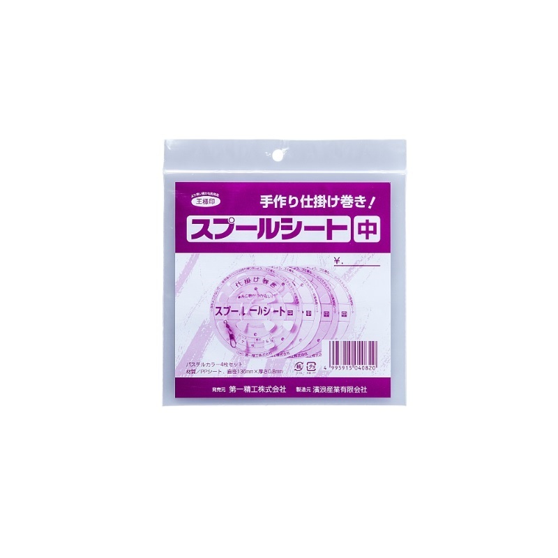 手作り仕掛け巻き!中以上のサイズでは胴突仕掛けや長いハリス仕掛けに(外側に幹糸、中側・内側にエダス)巻いて下さい。直径が大きいので、2種類の仕掛けも巻けます。DAIICHISEIKO第一精工 スプールシート●サイズ:中●シートサイズ:φ136mm 厚さ0.8mm●入数:4枚(パステルカラー2色×1枚+1色×2枚)●MADE IN JAPAN