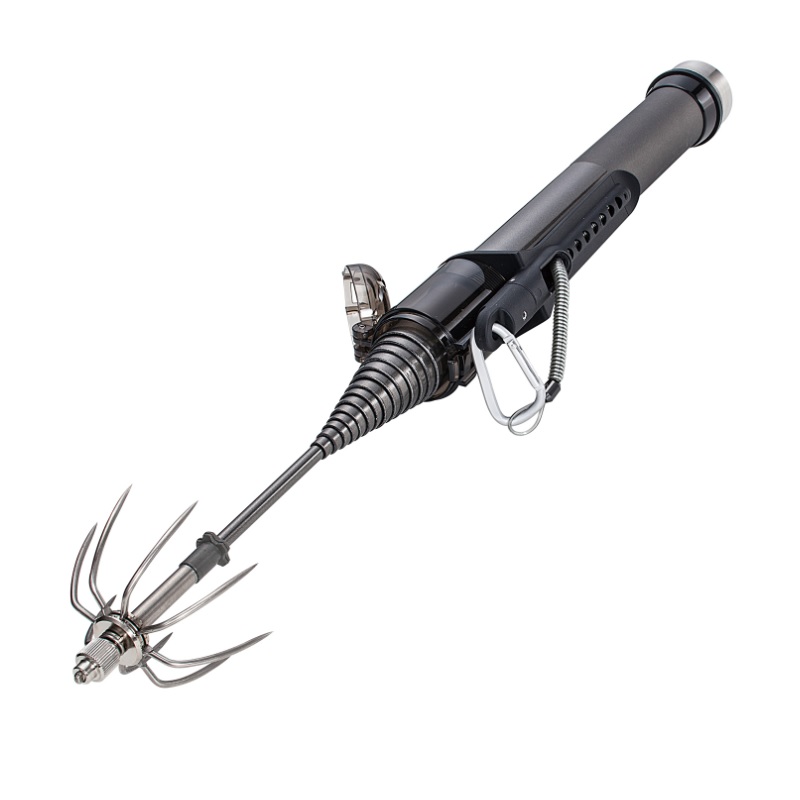 リリースボタンを押すとキャップが開くので、勢いよく振り出すだけでギャフが飛び出し自動で開き、片手だけでの素早いランディングが可能