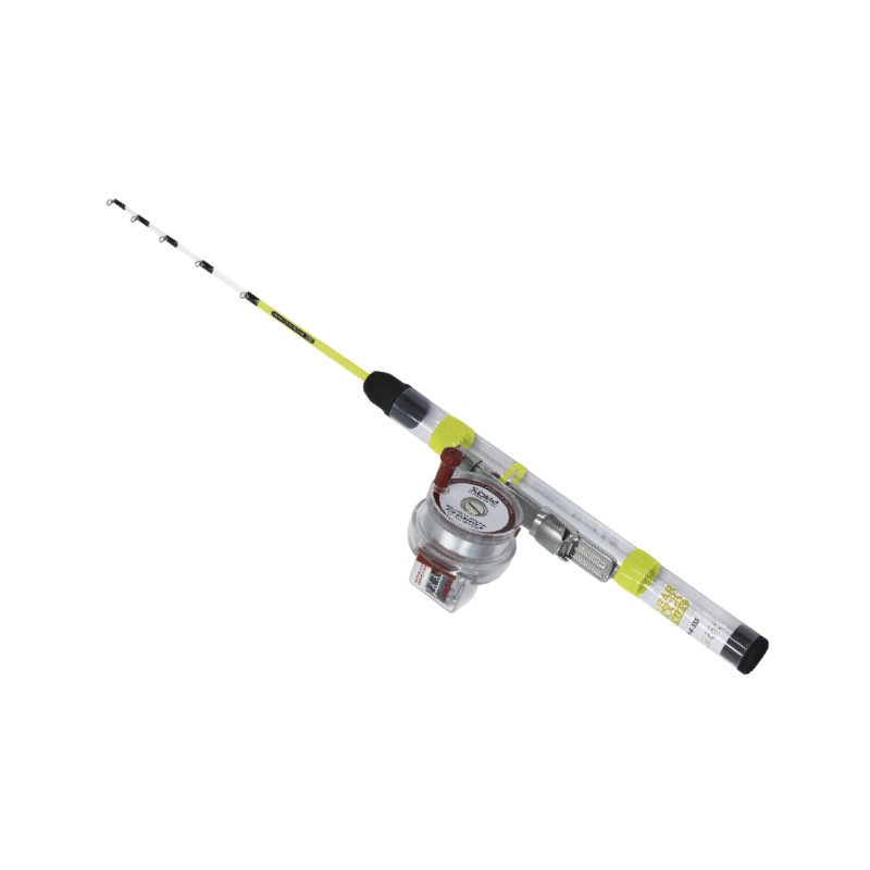 グラス製扁平穂先を使用したドーム船、氷上釣り対応のワカサギ専用ロッドに棚がわかるカウンター付の小型両軸リールを搭載したワカサギ釣り専用セット。