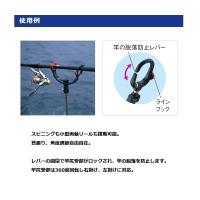 レバーの開閉で竿尻受部がロックされ、竿の脱落を防止します。