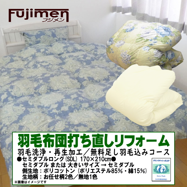 羽毛布団 打ち直しリフォーム セミダブル(170×210cm) サイズ変更可能 ポリコットン生地/羽毛洗浄再生込み料金・羽毛洗浄クリーニング
