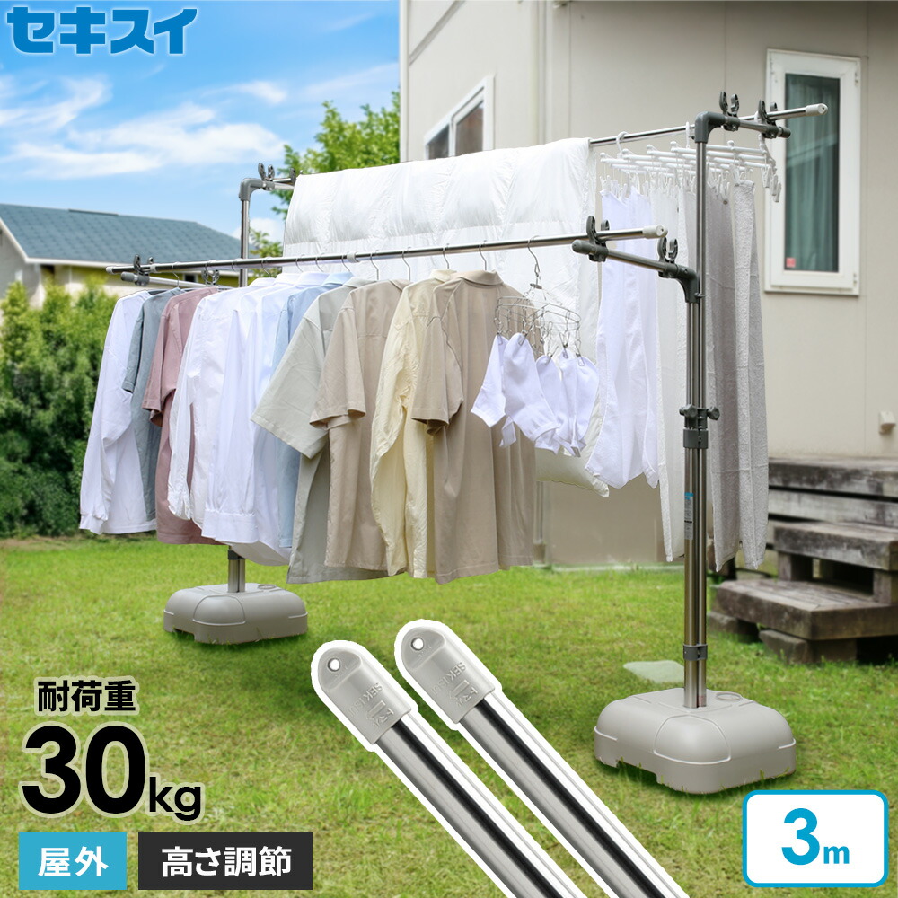 大人気の「セキスイ ブロー台付き ステンレス物干し台セット BD-50S」と「セキスイ 物干し竿(3m) 2本セット」がセットになって登場!