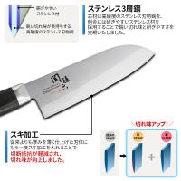 食材への切断抵抗を小さくする「スキ加工」と「三段階研削加工」により、食材への切り込みが良く鋭い切れ味。