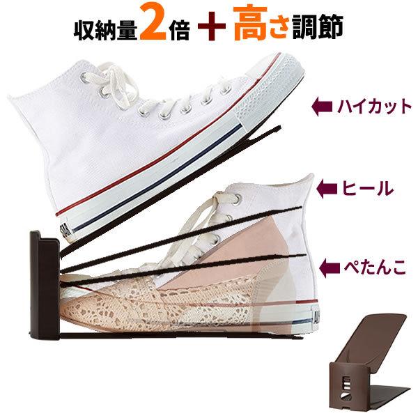 下駄箱内の靴収納に最適なくつホルダー。 片足分のスペースに両足分収納できるから、収納量が約2倍にアップ。