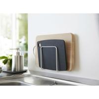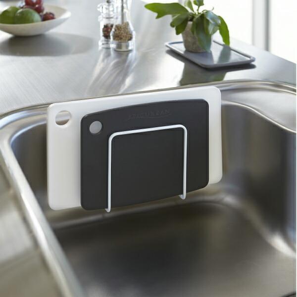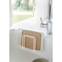 シンクの内壁面やシンク周りの壁に吸盤で取り付けられるまな板スタンド。