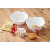 中身を混ぜやすい広口形状と、中身を注ぎやすい楕円型の計量カップ。