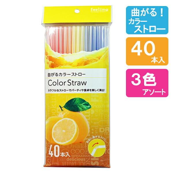 ストロー フィーリング 曲がるカラーストロー 3色アソート ストライプ 40本入 | 曲がる まがる カラフル マルチカラー 長さ21cm