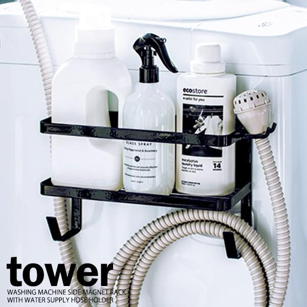 残り湯を給水するホースを上手に収納できるマグネット式ラック。