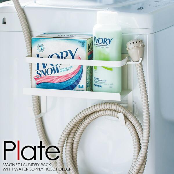 残り湯を給水するホースを上手に収納できるマグネット式ラック。