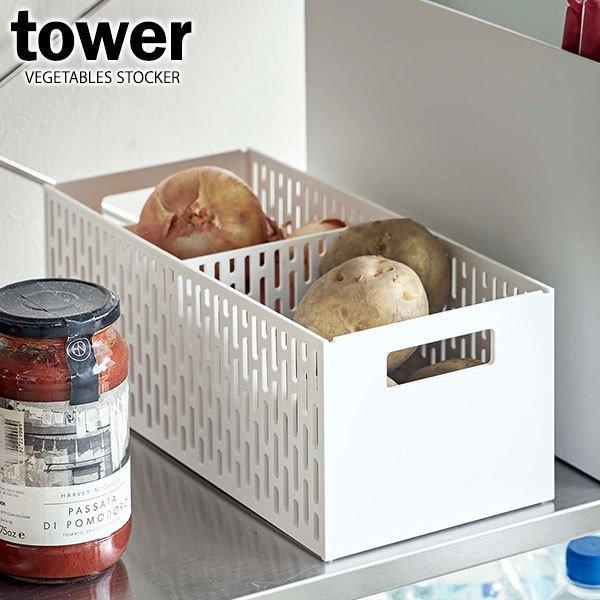 山崎実業 野菜ストッカー tower タワー ベジタブルストッカー ホワイト 5020 | ストッカー 保存ケース 仕切り付き スタッキング 収納