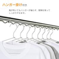 風が吹いてもハンガーがズレない、ハンガー掛けが付いた伸縮ものほし竿。【3m】