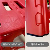踏み台の表面に凸凹加工を施し、脚部には滑り止めゴム付きで、すべりにくくしています。