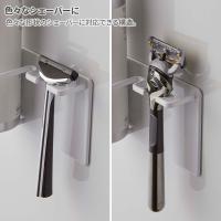 シェービングフォームも一緒に収納できるのでスッキリ見える。(直径6cm以内のボトルであれば収納可能)