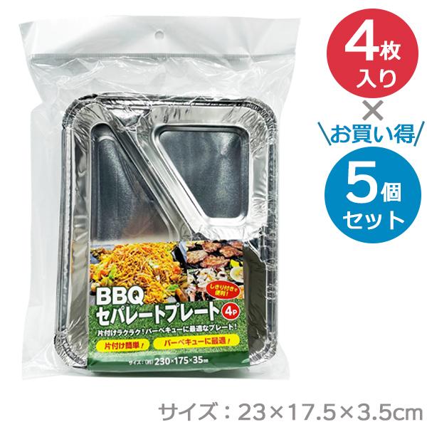 バーベキュー アルミプレート BBQセパレートプレート 230×175×35mm 4枚入5個セット | 使い捨て食器 仕切り付 BBQ 取り皿