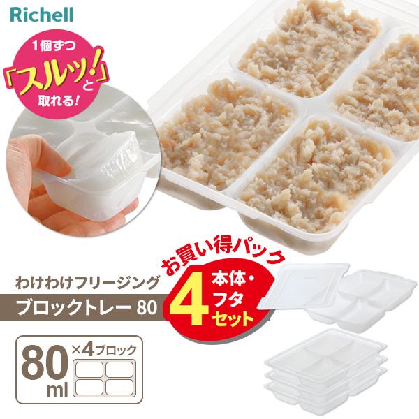時間のかかる離乳食づくりを一気に作って冷凍できるブロックトレー。【(80ml×4ブロック)×4セット入】