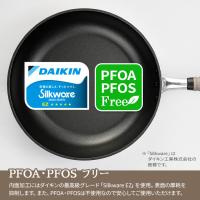 内面加工にはダイキンの「Silkware EZ」を使用。Silkwareの最高級グレードで、特殊な球状セラミック粒子を配合しているので摩耗を抑制し、フライパンの寿命を最大限に伸ばします。(金属ヘラもOK)